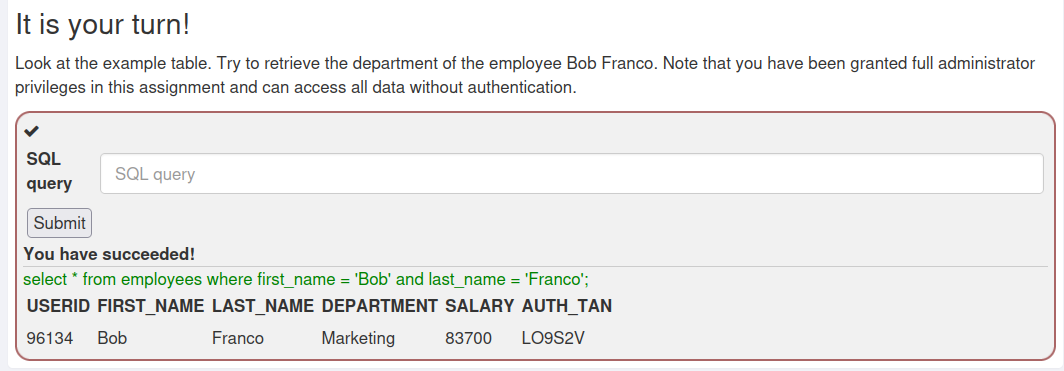 | [Webgoat] A3 Injection - SQL Injection (Advanced) (0) | 2023.10.30 |