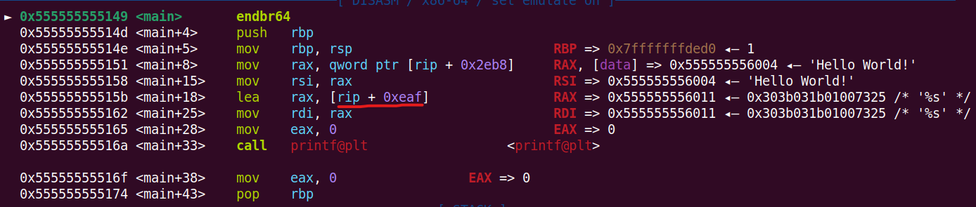 얘도 내 실습창에선 rip+0xeaf로 참조하고 있음
