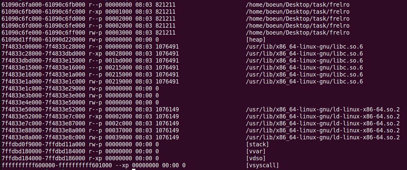 563782c65000-563782c66000 r-xp 00001000 08:02 2886178 /home/dreamhack/frelro