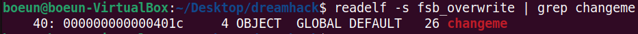 $ readelf -s fsb_overwrite | grep changeme